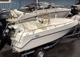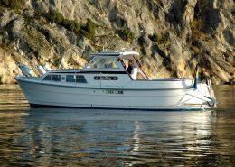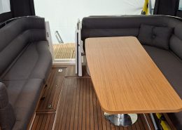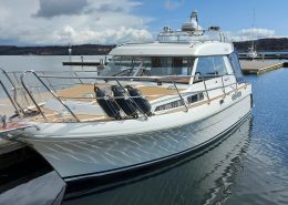 Styrhytt med dörrar på babord och styrbord sida samt till akterdäck